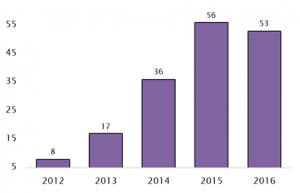 In Scotland the number of distilleries has grown by 50 per cent in the last year, with 12 opening in 2015, and 18 in 2016. Scotch Whisky is currently one of Scotland’s top exports.