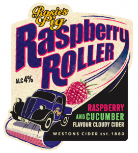 Designed by Cheltenham-based design agency BOS (Brand on Shelf), Rosie’s Pig Raspberry Roller’s pump clip, like the rest of the range, features the iconic Rosie’s Pig, which was Westons Cider’s original delivery truck.